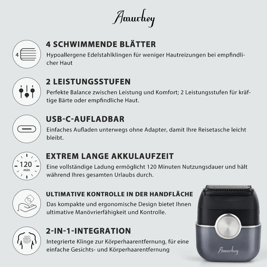 Amurhey FK706 Mini Rasierer Herren Elektrisch mit Reiseetui
