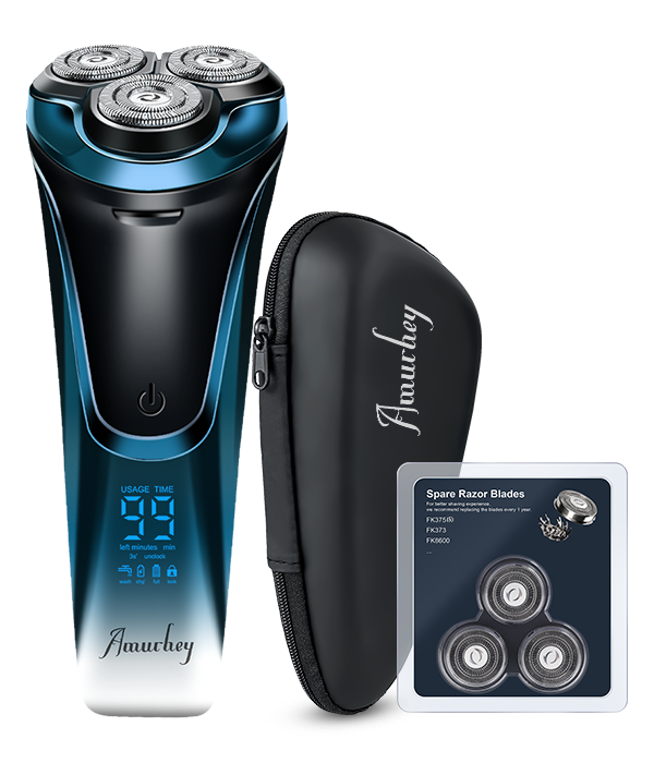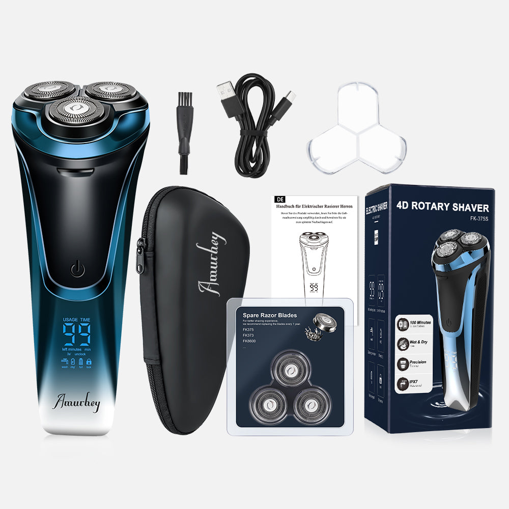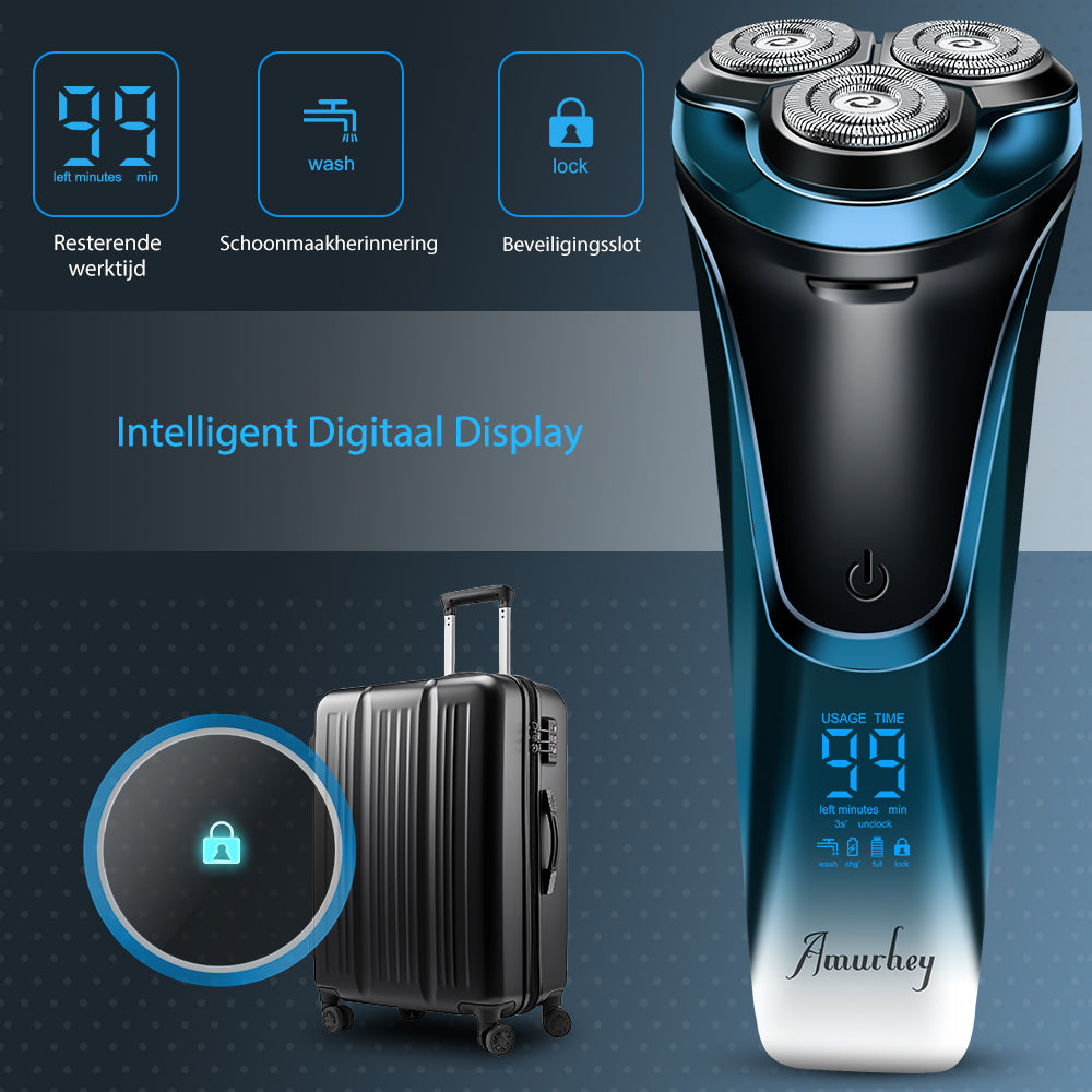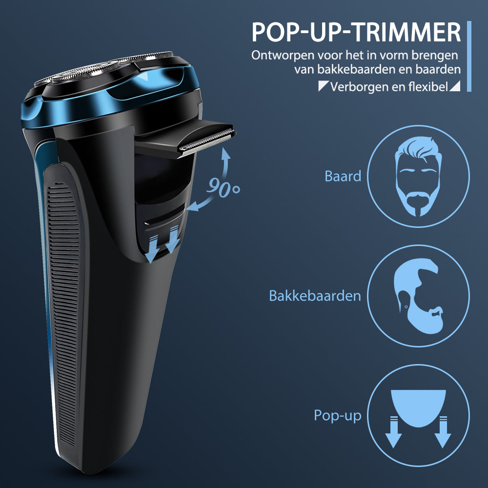 Scheerapparaat voor mannen Pro: Elektrisch nat en droog scheren, incl. GRATIS reisetui & 3 vervangende scheerkoppen