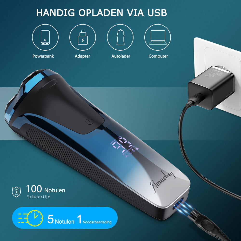 U kunt uw scheerapparaat altijd en overal opladen, bijvoorbeeld met een oplader, computer, powerbank, autolader, etc.